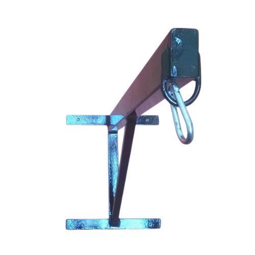 Soporte fabricado en fierro rectangular de 50X30 mm, 2 mm de espesor, 75 cm de largo, pletina de 5 mm de espesor, un mosquetón de 6 mm, tiene cuatro perforaciones para su fijación al muro, lleva cuatro pernos tira fondo de ¼ X2 pulgadas con sus tarugos.